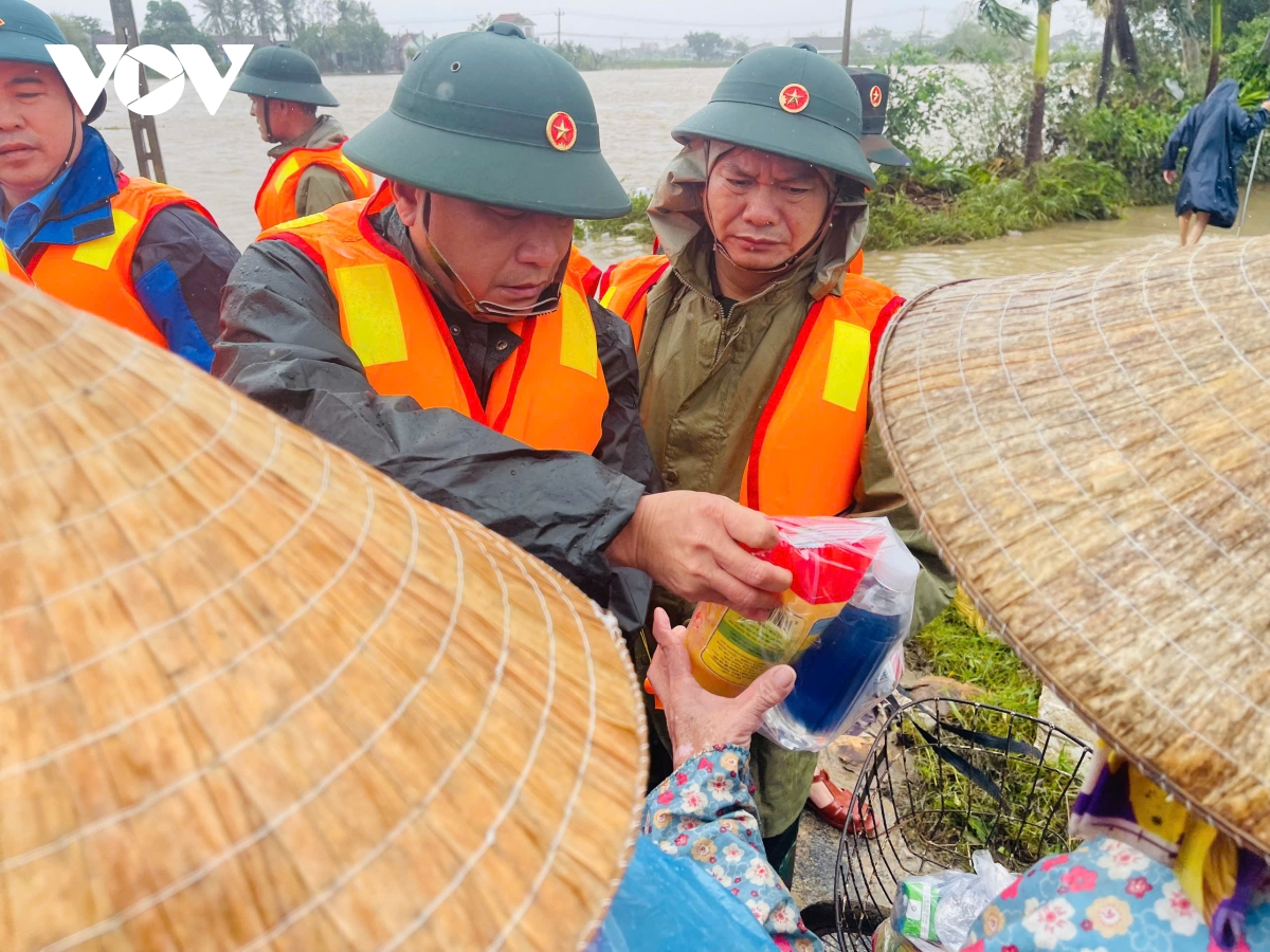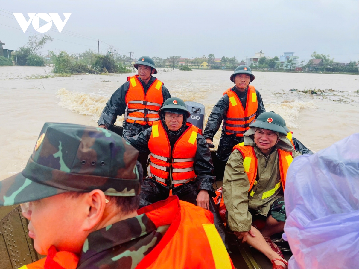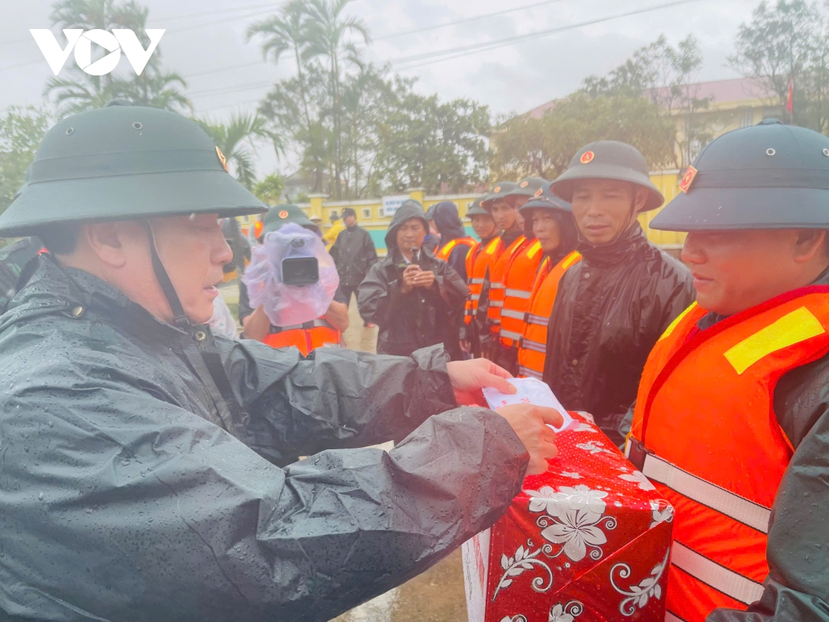 Đoàn công tác của Tổng cục Chính trị Quân đội Nhân dân Việt Nam do Thượng tướng Trương Thiên Tô, Phó Chủ nhiệm Tổng cục Chính trị Quân đội Nhân dân Việt Nam làm Trưởng đoàn đã đến thăm hỏi, chia sẻ mất mát và động viên bà con vùng bị ảnh hưởng nặng nề.