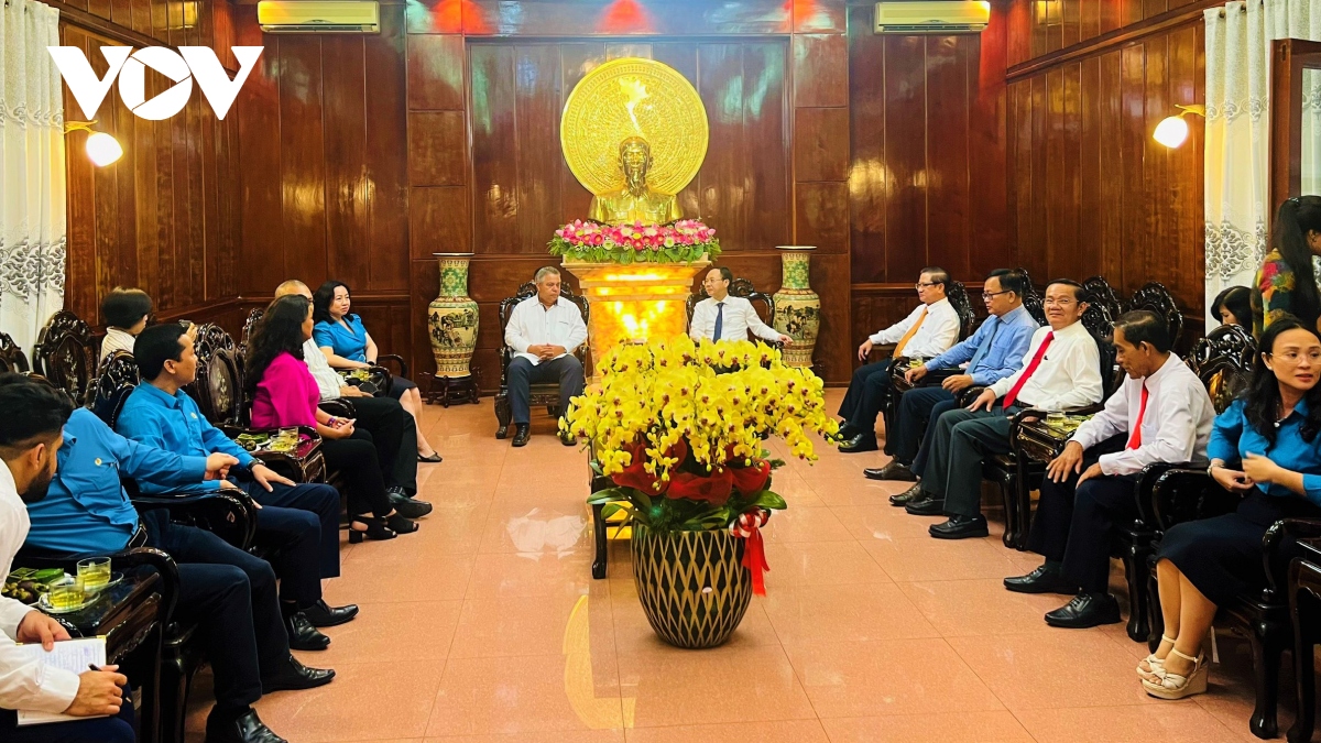 Ông Nguyễn Văn Hiếu – Bí thư Thành ủy Cần Thơ và ông Ulises Guilarte de Nacimiento – Tổng Thư ký Trung tâm Những Người lao động Cuba, Phó Chủ tịch Liên hiệp Công đoàn Thế giới. Ảnh: VOV |