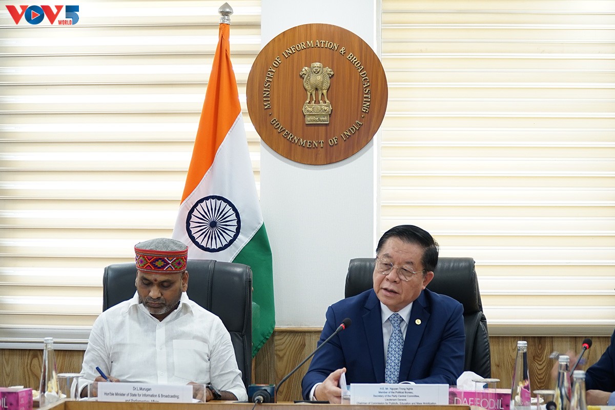 Tiếp tục chuyến công tác tại Ấn Độ, trong hai ngày 5/6 và 6/6, đoàn đại biểu Đảng Cộng sản Việt Nam do Trưởng Ban Tuyên giáo và Dân vận Trung ương Nguyễn Trọng Nghĩa dẫn đầu đã có các cuộc trao đổi với các quan chức Ấn Độ, trong đó có Quốc vụ khanh Bộ Thông tin và Phát thanh-Truyền hình Ấn Độ Loganathan Murugan, Bộ trưởng Bộ Văn hóa Gajendra Singh Shekhawat, Tổng Bí thư Đảng Cộng sản Ấn Độ (CPI) Doraisamy Raja, Tổng Bí thư Đảng Cộng sản Ấn Độ Marxist Mariam Alexander Baby.