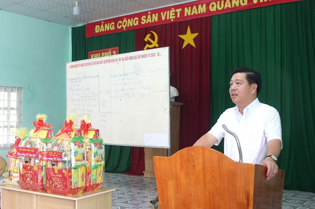 Thứ trưởng, Phó Chủ nhiệm Ủy ban Dân tộc Lê Sơn Hải chúc tết bà con. Ảnh: Hồng Hiếu- TTXVN |