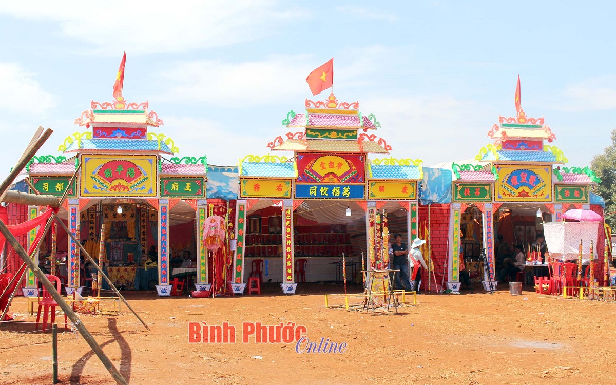 Từ nhiều ngày trước, người Hoa khắp nơi đổ về để trang trí không gian khu vực làm lễ. Ảnh: Báo Bình Phước |
