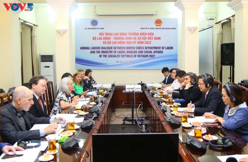 Thứ trưởng Bộ Lao động, Thương binh và Xã hội Lê Văn Thanh cho biết: "Hiện nay, Việt Nam đã tham gia cơ bản các Công ước của Tổ chức Lao động quốc tế (ILO). Qua các Công ước mà Việt Nam tham gia, chúng tôi đã nội Luật hóa bằng các Luật, đặc biệt là Bộ Luật Lao động năm 2019. Bộ Lao động và ILO cũng đã ký nhiều biên bản hợp tác giai đoạn 2021-2030. Chúng tôi mong muốn qua đối thoại lần này, phía Hoa Kỳ sẽ hiểu hơn các chính sách của Việt Nam về lao động việc làm, trẻ em, bình đẳng giới và an sinh xã hội. Qua trao đổi, 2 bên cũng học hỏi kinh nghiệm lẫn nhau, đặc biệt là kinh nghiệm của Hoa Kỳ để chúng tôi có thể xây dựng những văn bản pháp luật trong thời gian tới".