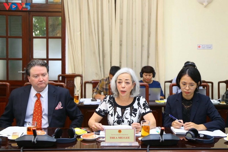 Về phần mình, bà Thea Lee, Phó Thứ trưởng phụ trách các vấn đề lao động quốc tế của Bộ Lao động Hoa Kỳ, ghi nhận và đánh giá cao những nỗ lực chung của Việt Nam trong những năm qua; đồng thời, cung cấp thông tin hữu ích về vấn đề an toàn vệ sinh lao động, vấn đề lao động trong nền kinh tế số, góp phần giúp Việt Nam có thêm thông tin căn cứ để định hướng phát triển giáo dục nghề nghiệp, đào tạo kỹ năng cho người lao động.