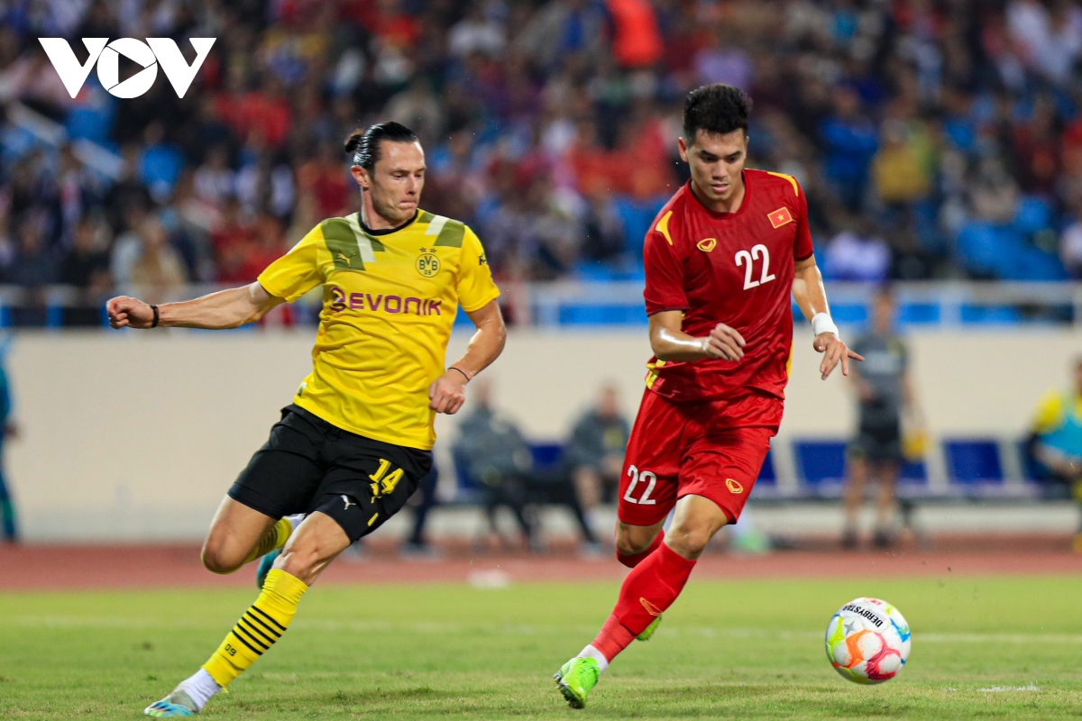 Trong hiệp 1 của trận đấu, CLB Dortmund dẫn trước với pha ghi bàn của cầu thủ Malen ở phút thứ 13. Cũng trong hiệp đấu này, cầu thủ Tiến Linh đã có bàn thắng gỡ hòa, đưa trận đấu về thế cân bằng ở phút 36. Đến cuối hiệp 2, đội tuyển Việt Nam được hưởng quả phạt đền 11m và Phạm Tuấn Hải dứt điểm thành công, qua đó giúp thầy trò huấn luyện viên Park Hang-seo giành chiến thắng chung cuộc với tỷ số 2-1 trước CLB Borussia Dortmund.