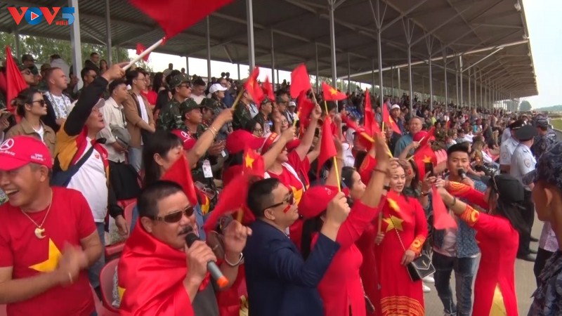 Khán giả Việt Nam cổ vũ cho đội tuyển Xe tăng Việt Nam thi đấu. Nguồn: Phóng viên |