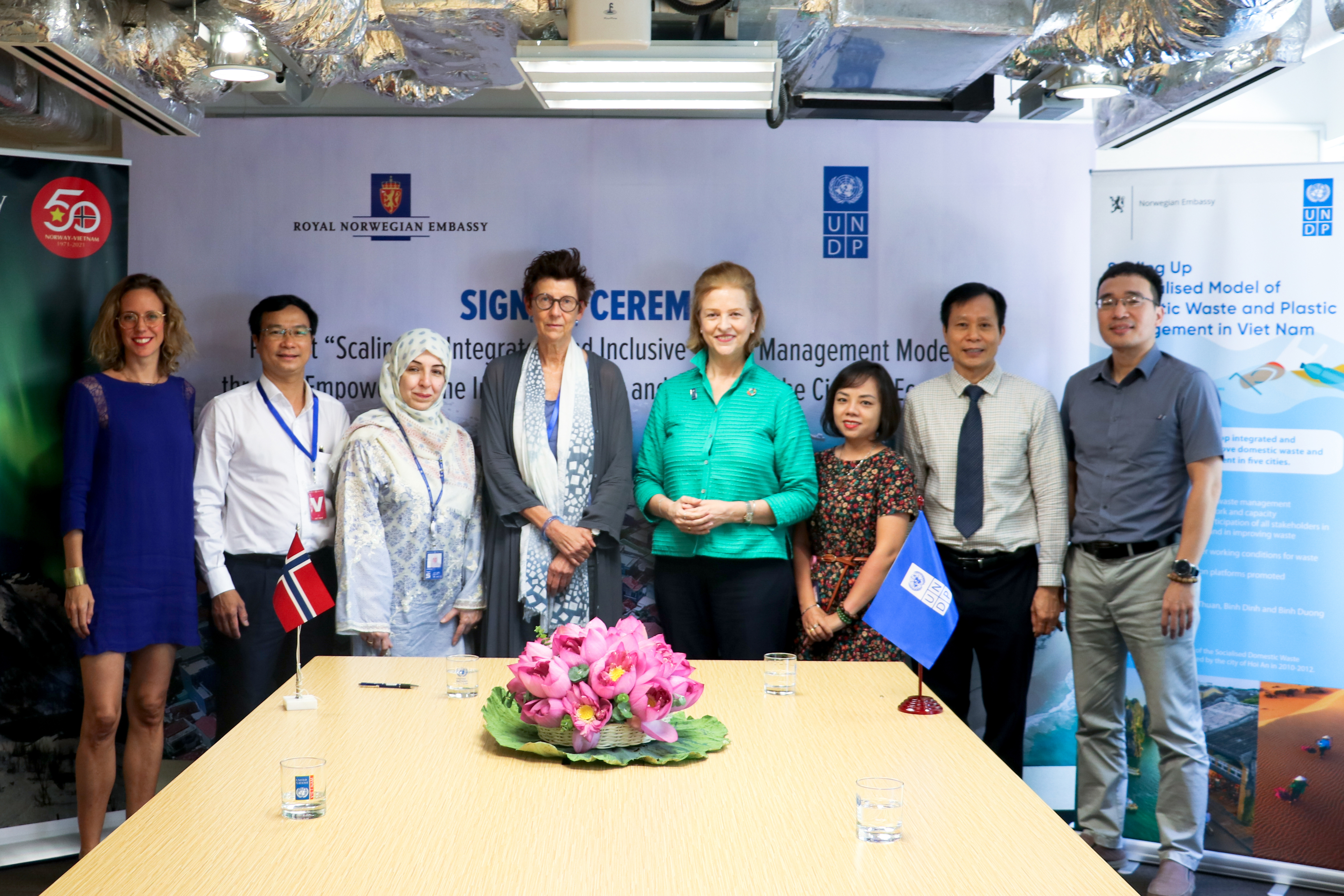 Đại sứ quán Na Uy, Chương trình Phát triển Liên Hợp Quốc (UNDP) và phía đối tác Việt Nam vừa kí một thoả thuận hợp tác dự án mới, có tên “Nhân rộng các mô hình quản lý rác thải tổng hợp và toàn diện thông qua việc trao quyền cho người lao động khu vực phi chính thức và thúc đẩy kinh tế tuần hoàn”.