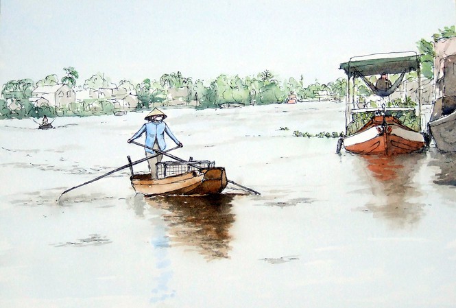 Henry-Louis Rozo lần lượt vẽ 8 bức tranh màu nước khổ 33 x 25 về những cảnh đẹp ở Việt Nam, nơi ông đi qua.