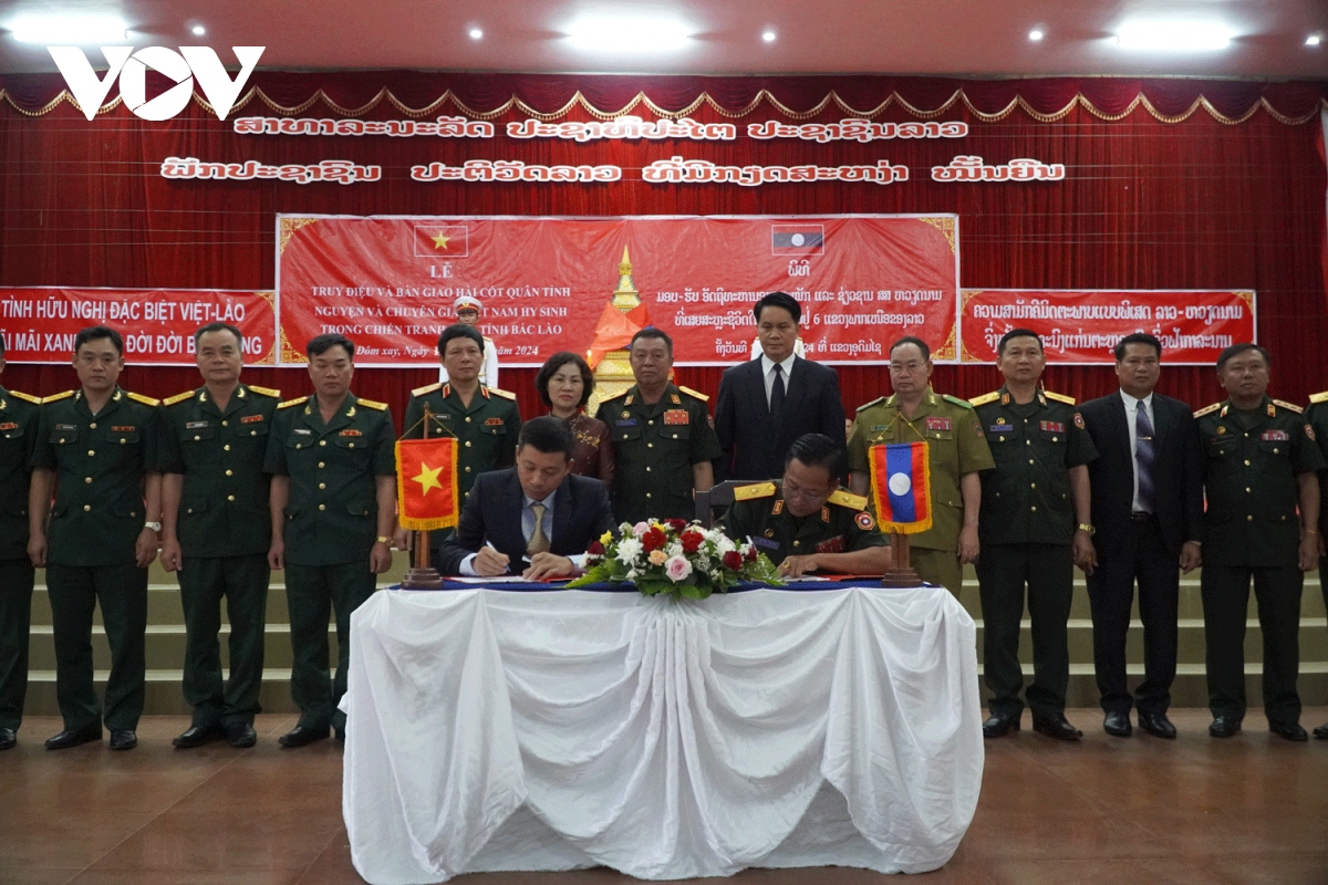 Lễ ký Biên bản bàn giao hài cốt anh hùng liệt sỹ quân tình nguyện và chuyên gia Việt Nam. Ảnh: PV/VOV-Vientiane |