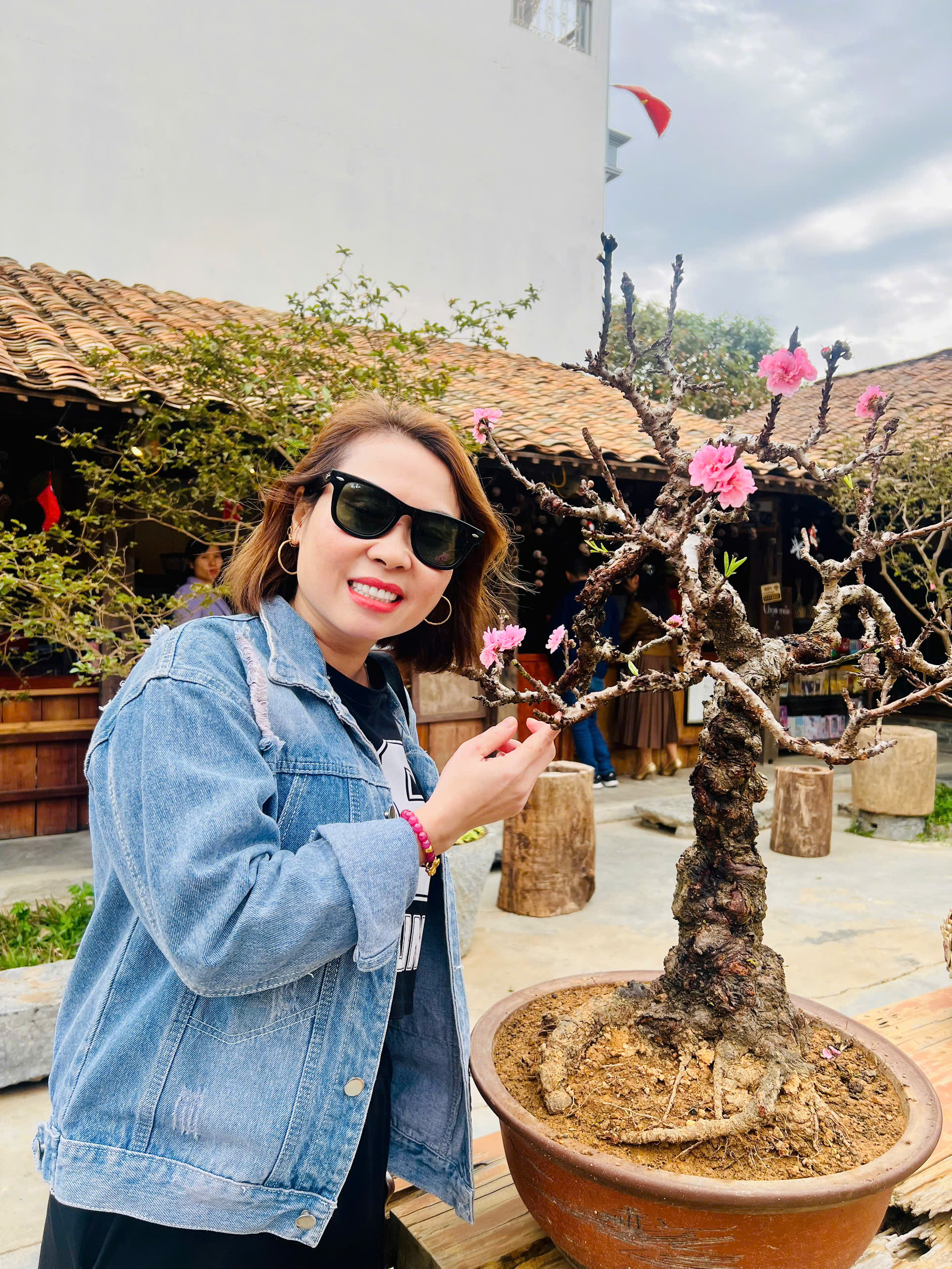 Du khách check-in với hoa đào nở sớm, đón gió đông. |