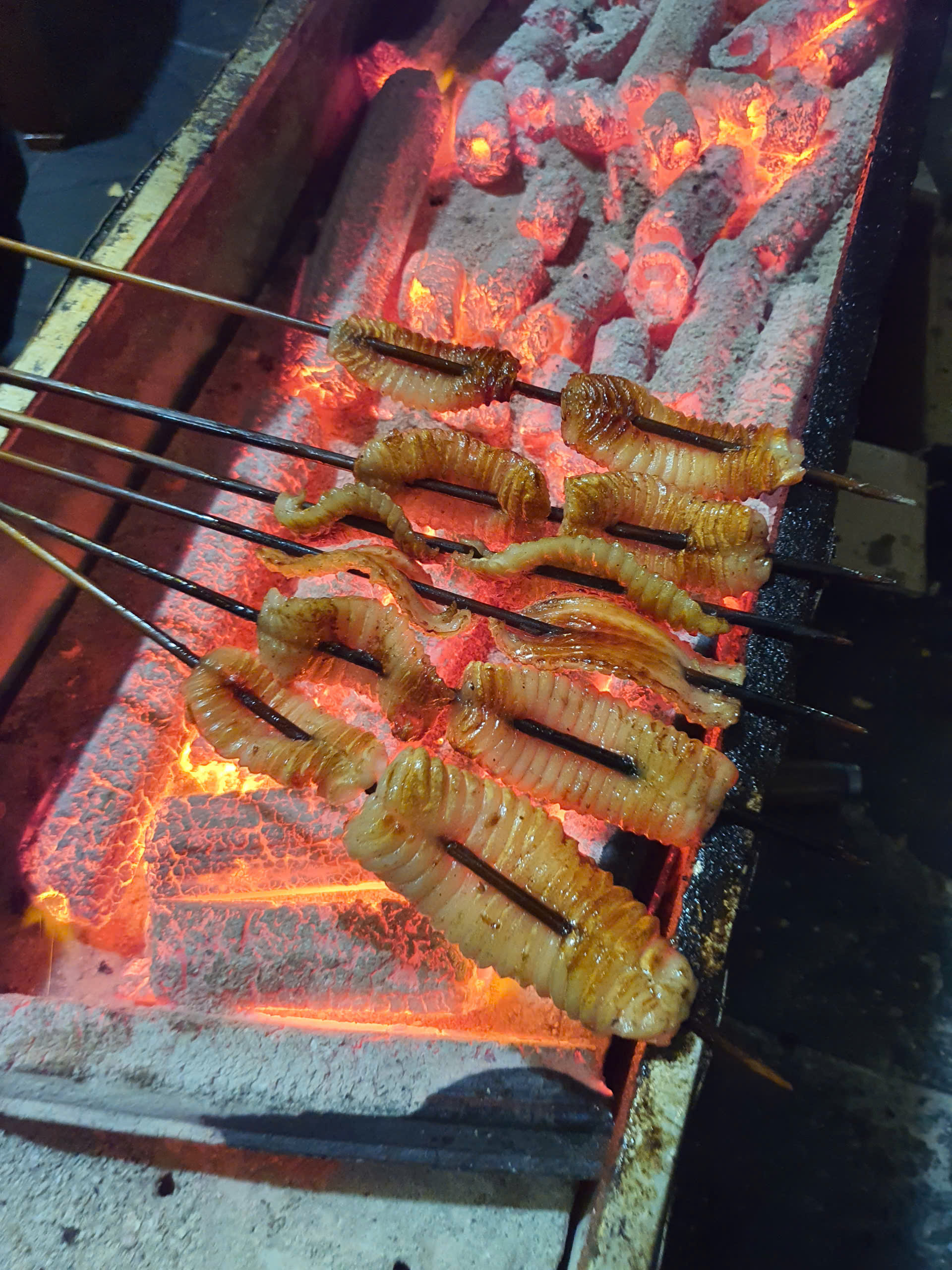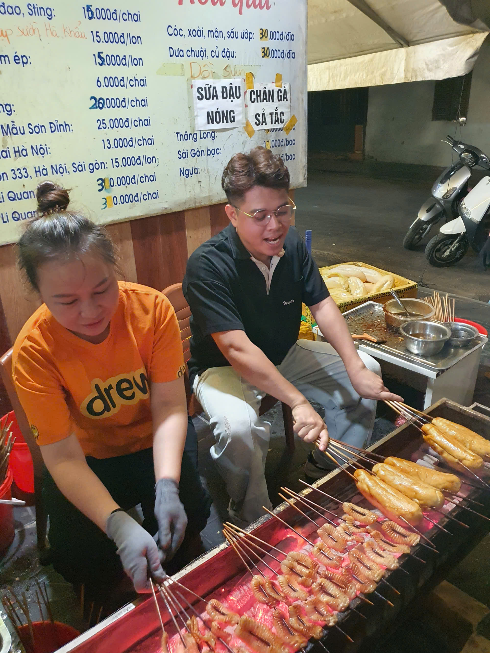 Tiktoker Anh Ba Dân trải nghiệm nướng thịt chợ đêm Lạng Sơn. |