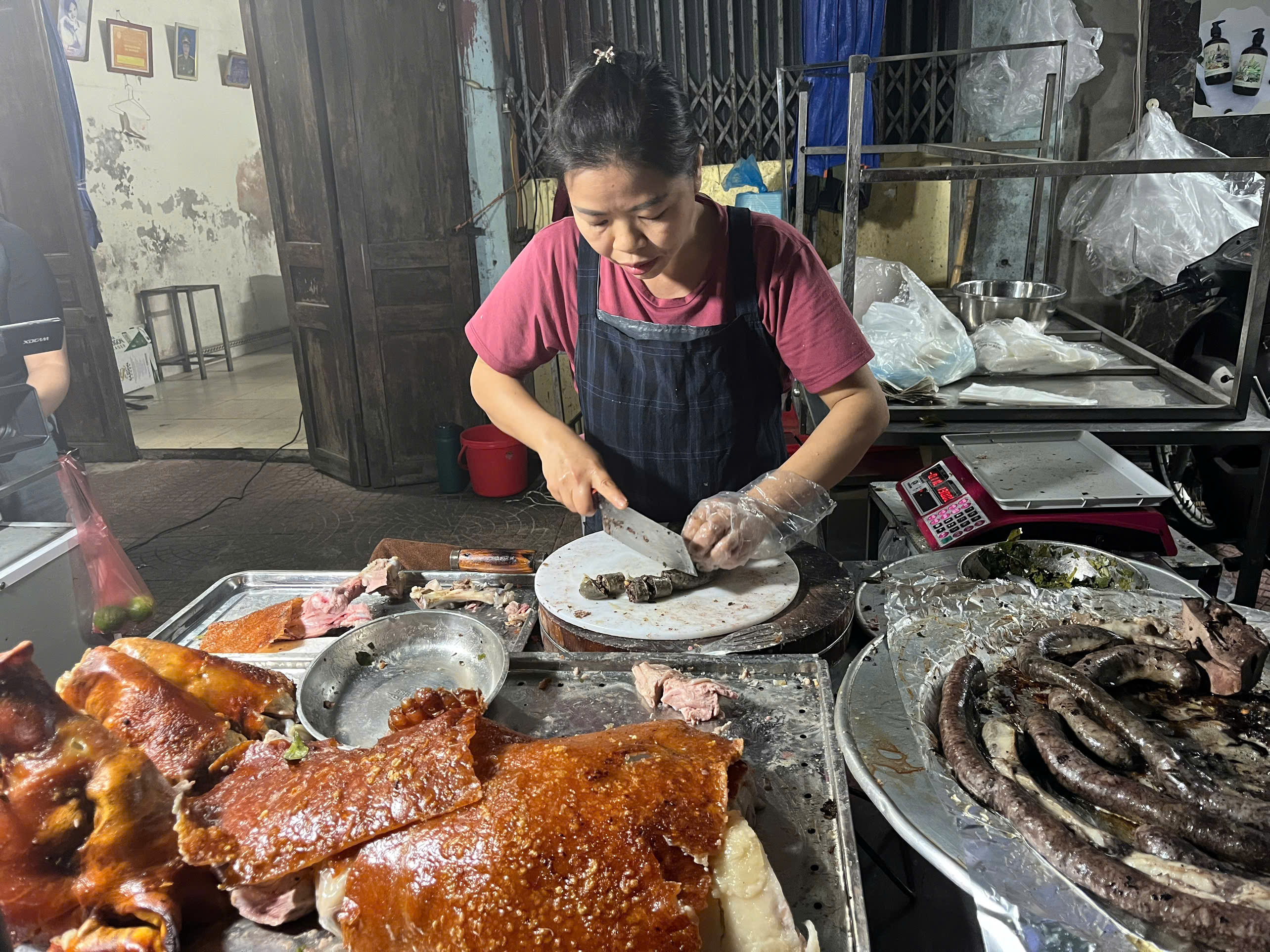 Món thịt lợn quay nóng giòn, dồi nóng được thưởng thức ngay tại lò, kiểu street food là một trải nghiệm vô cùng tuyệt vời với du khách. |