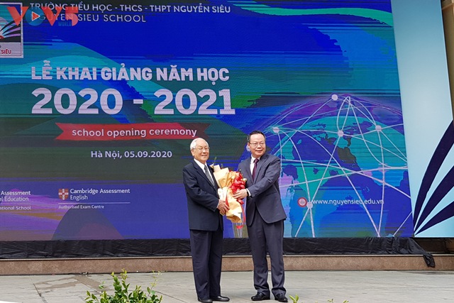 Phó chủ tịch quốc hội Phùng Quốc Hiển dự lễ khai giảng Trường Nguyễn Siêu. Ngọc Anh/VOV5 |