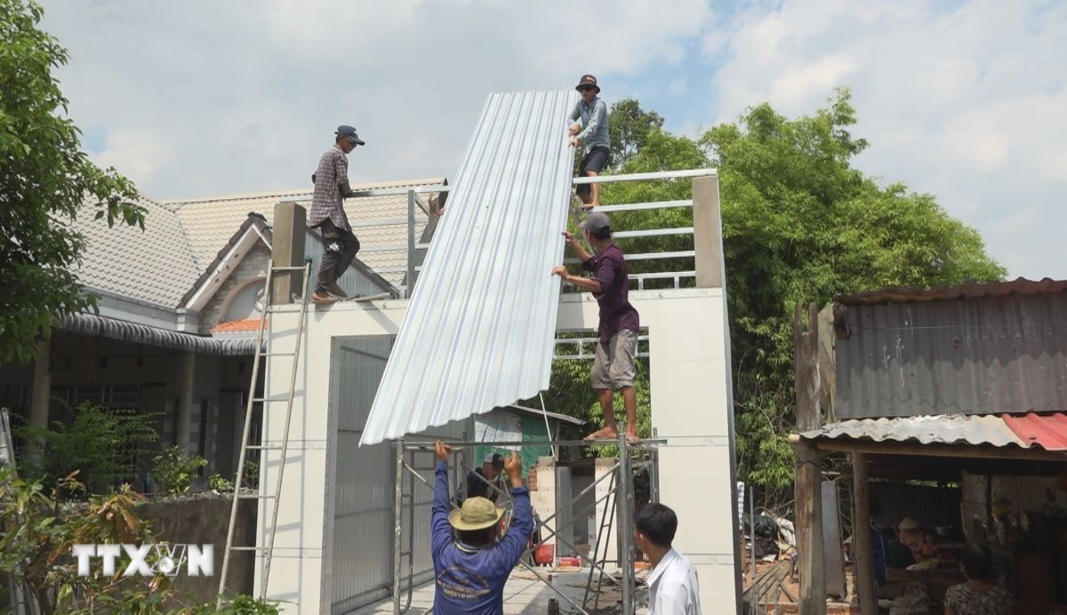 Nhóm Thiện nguyện huyện Lai Vung, tỉnh Đồng Tháp xây dựng nhà miễn phí cho hộ dân trong Chương trình xóa nhà tạm, nhà dột nát. Ảnh: TTXVN |