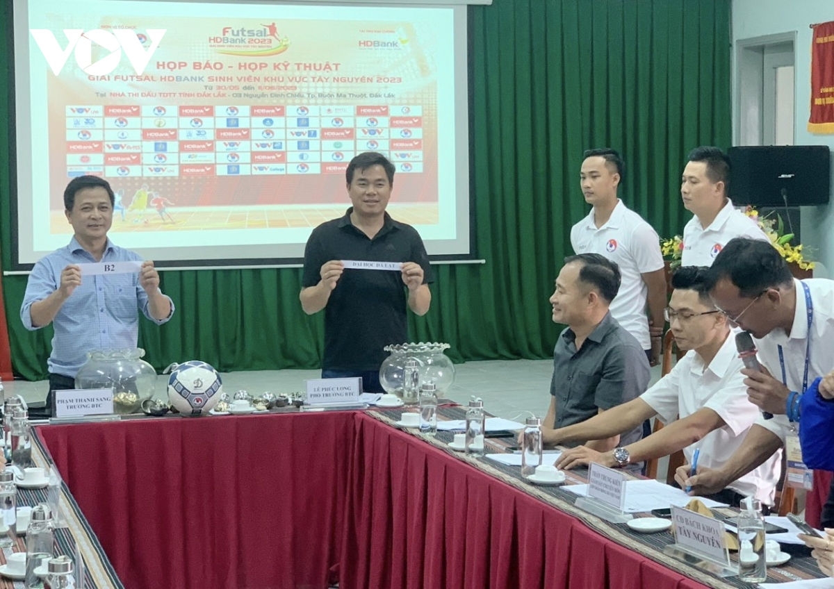 Chiều 28/5, tại thành phố Buôn Ma Thuột (Đắk Lắk), đại diện Liên đoàn Bóng đá Việt Nam (VFF), Đài Tiếng nói Việt Nam (VOV), đơn vị tài trợ là ngân hàng Hdbank, tổ chức họp báo công bố Khai mạc giải Futsal Hdbak sinh viên khu vực Tây Nguyên năm 2023.