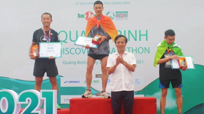 Ban Tổ chức trao giải cho các VĐV nam cự ly 42 km, mùa giải Marathon năm 2021 tại Quảng Bình - Ảnh minh họa: baogiaothong.vn |