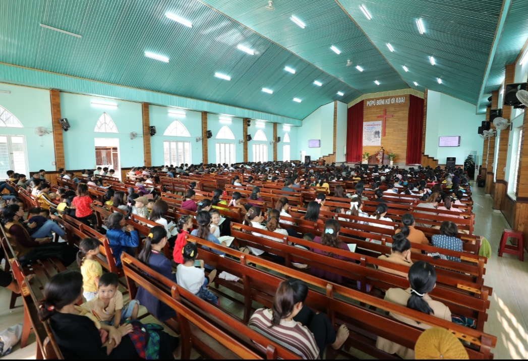Quang cảnh sinh hoạt tôn giáo ở nhà thờ Plei Mơ Nú. |