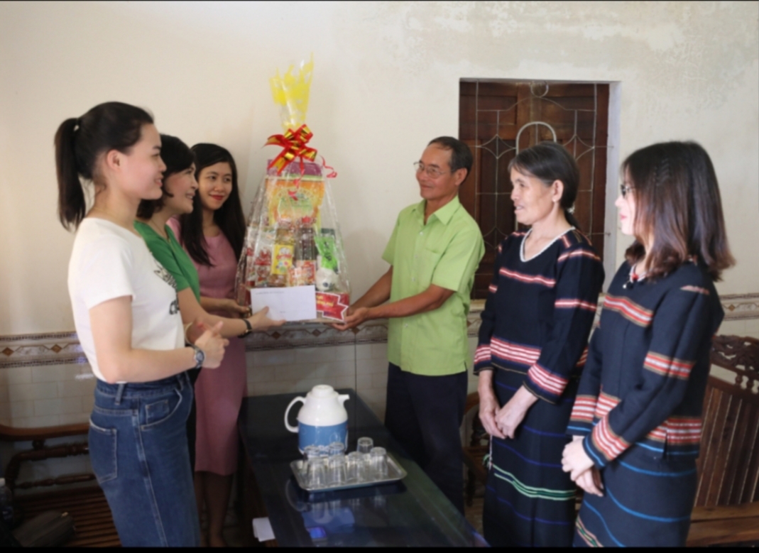 Đoàn cán bộ trung ương, địa phương thăm tặng quà gia đình ông Djơnh. |