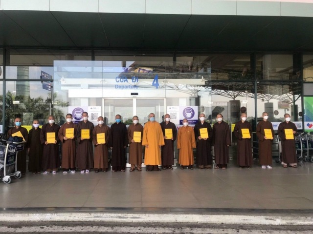 Giáo hội Phật giáo tiễn các nhà sư tình nguyện lên tuyến đầu chống dịch. Ảnh: VOV |
