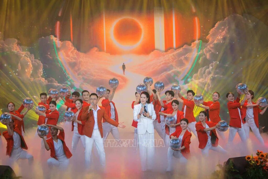 Chương trình giao lưu nghệ thuật “Theo ánh bình minh”. Ảnh: Trung Hiếu/TTXVN |