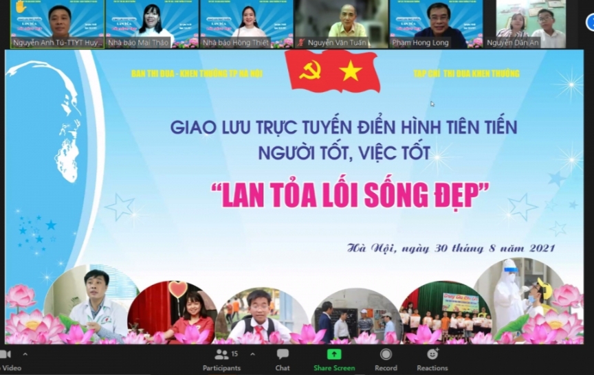 Ngày 30/8, Tạp chí Thi đua Khen thưởng phối hợp với Ban Thi đua Khen thưởng Thành phố Hà Nội tổ chức giao lưu trực tuyến gương điển hình tiên tiến, người tốt, việc tốt với chủ đề “Lan tỏa lối sống đẹp” trên trang tin điện tử Tạp chí Thi dua Khen thưởng.