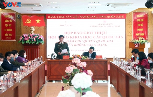 Ngày 6/12, tại Hà Nội, Bộ Công an phối hợp với Nhà xuất bản chính trị quốc gia Sự thật tổ chức họp báo giới thiệu hội thảo khoa học cấp quốc gia “Bảo đảm chủ quyền quốc gia trên không gian mạng” sẽ diễn ra ngày 8/12. Hội thảo có sự tham gia của 100 đại biểu tại điểm cầu Hà Nội và hơn 2.000 đại biểu tham dự trực tuyến là đại diện lãnh đạo các tỉnh, thành ủy trực thuộc Trung ương, ban giám đốc, lãnh đạo lực lượng công an nhân dân tại các điểm cầu trực tuyến trong cả nước.