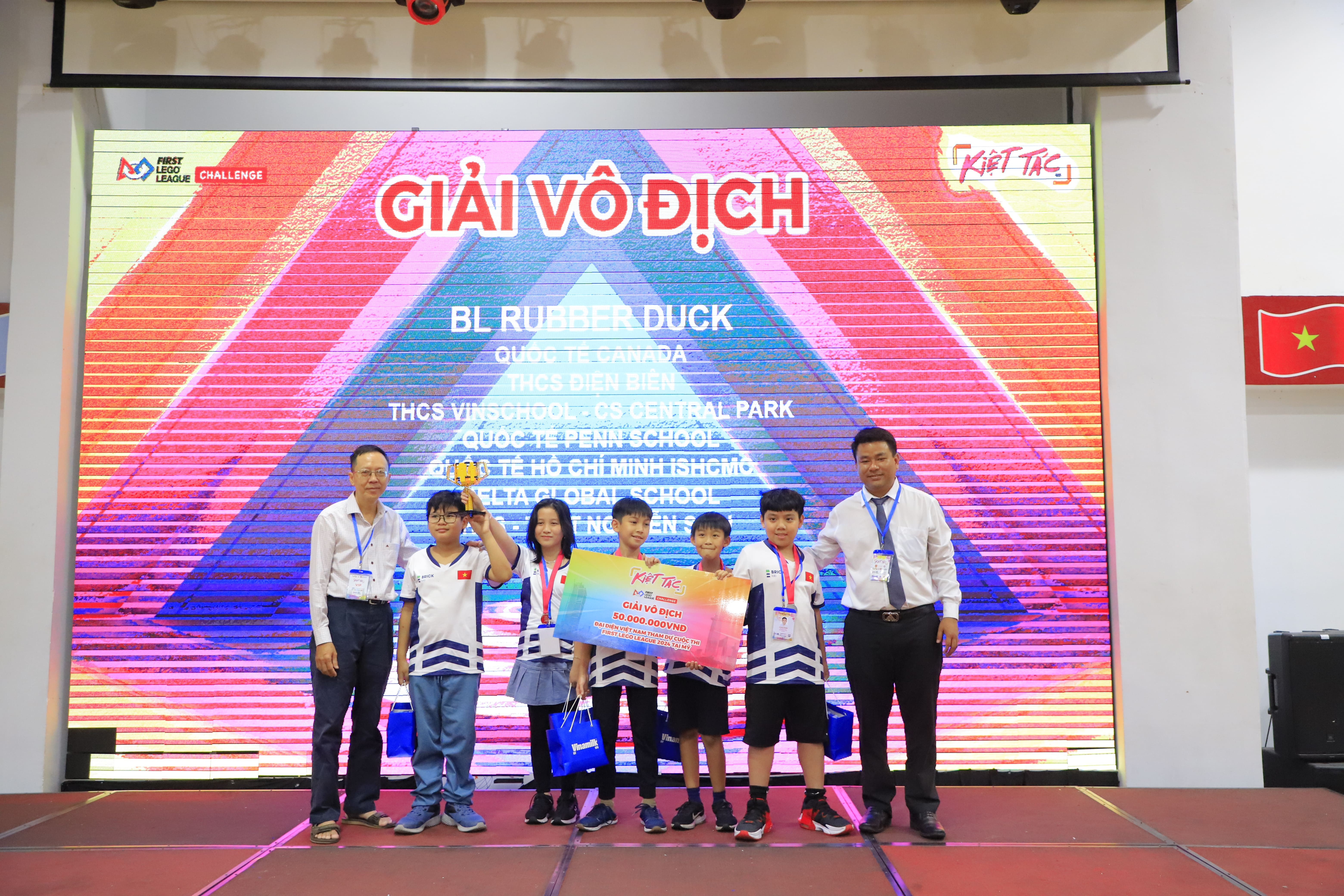 Đội Rubber Duck từ Trường Quốc tế Canada, Trường THCS Điện Biên, Trường THCS Vinschool – CS Central Park, Trường Quốc tế Hồ Chí Minh ISHCMC, Delta Global school, Trường THCS – THPT Nguyễn Siêu ở bảng Challenge cuộc thi ROBOTACON FIRST® LEGO® LEAGUE 2024 |
