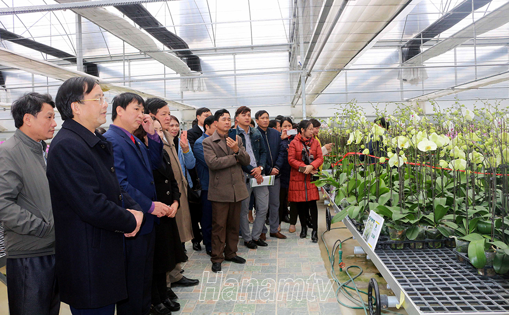 Các đại biểu tham quan vườn hoa phong lan ứng dụng công nghệ cao tại Công ty CP Nông nghiệp công nghệ cao Phù Vân, Ban quản lý Khu nông nghiệp ứng dụng công nghệ cao tỉnh Hà Nam - Ảnh: Đài phát thanh truyền hình Hà Nam |