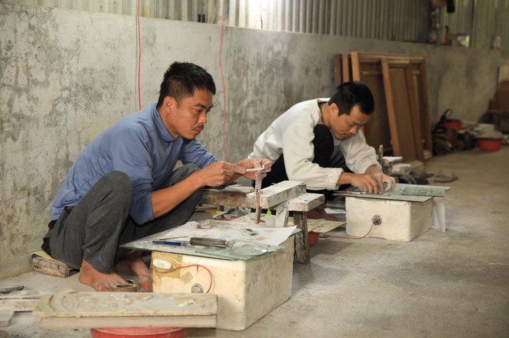 Nghệ nhân làm khảm trai sơn mài làng nghề ở Chuyên Mỹ, Phú Xuyên, Hà Nội |
