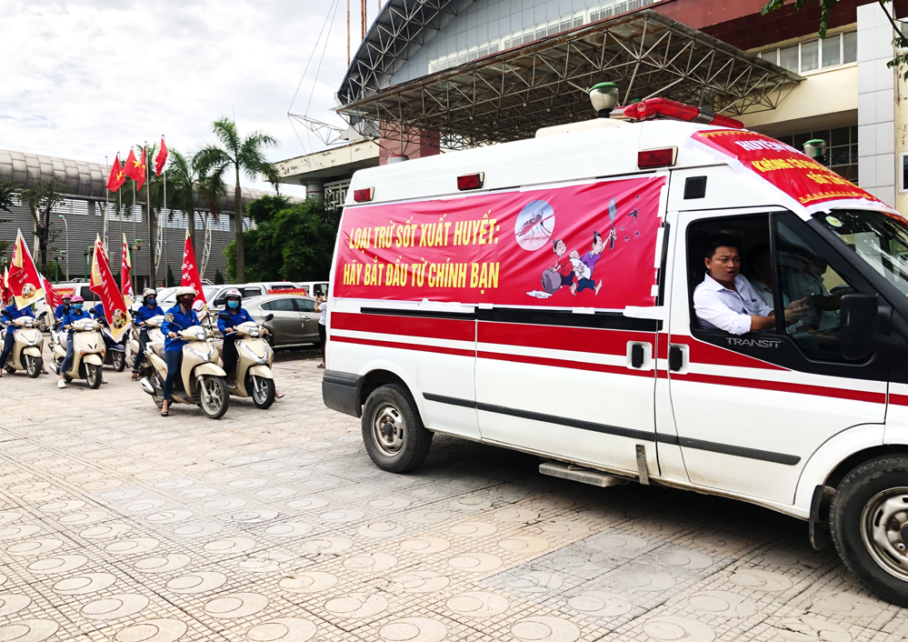 Đoàn xe diễu hành, cổ động, tuyên truyền về phòng, chống sốt xuất huyết. Ảnh: hanoimoi |