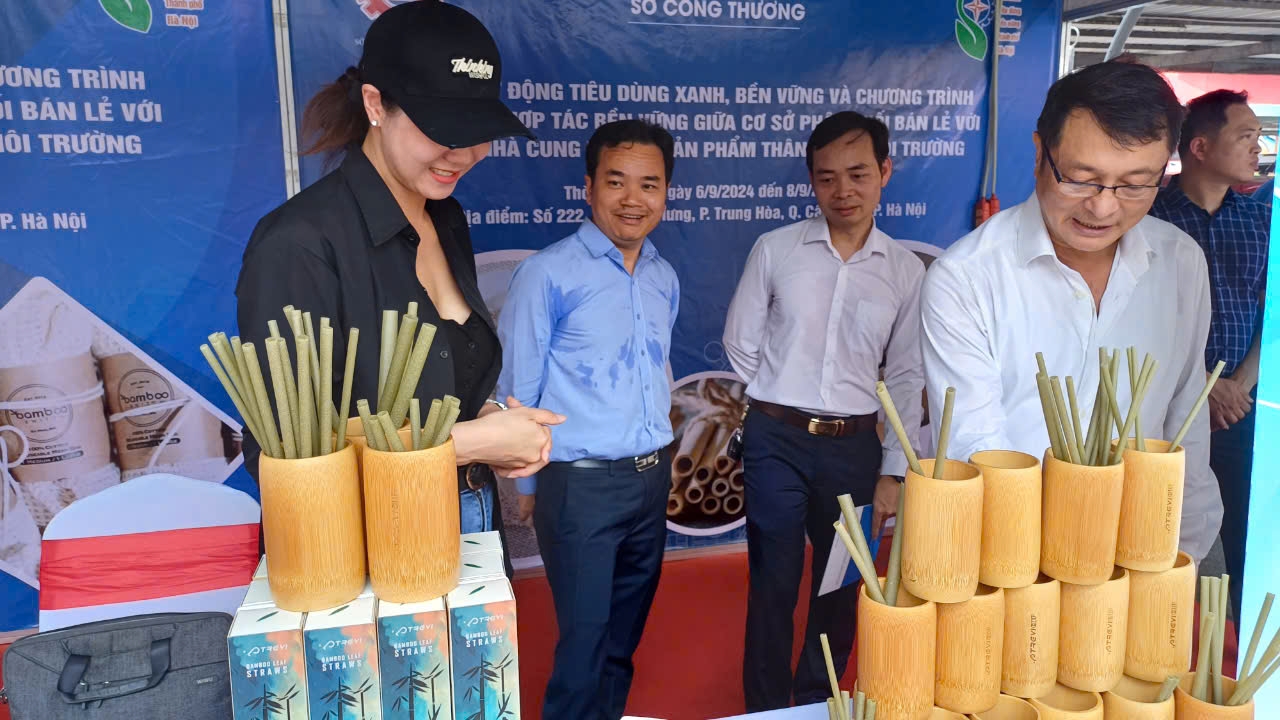 Sáng nay (6/9), Sở Công Thương Hà Nội phối hợp với Ủy ban nhân dân quận Cầu Giấy và Trung tâm thương mại BigC Thăng Long tổ chức lễ phát động tiêu dùng xanh, bền vững và Chương trình liên kết hợp tác bền vững giữa cơ sở phân phối bán lẻ và các nhà cung ứng về sản phẩm thân thiện môi trường. Sự kiện có quy mô 30 gian hàng diễn ra từ 6/9 - 8/9/2024 tại Trung tâm thương mại BigC Thăng Long (Hà Nội).