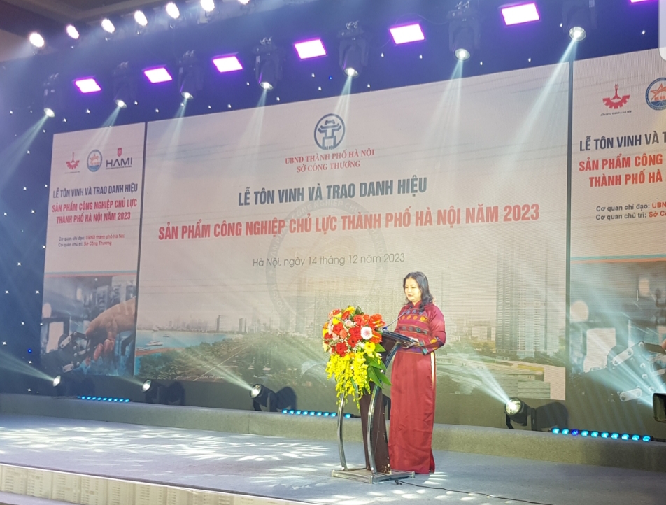 Phát biểu tại đây, bà Trần Thị Phương Lan, Quyền Giám đốc Sở Công Thương Hà Nội, cho biết việc công nhận và tôn vinh các sản phẩm công nghiệp chủ lực của thành phố Hà Nội góp phần tăng giá trị thương hiệu, qua đó thúc đẩy sản xuất kinh doanh, tạo điều kiện cho doanh nghiệp phát triển bền vững. Đồng thời, điều này thể hiện sự quan tâm, hỗ trợ và luôn đồng hành của chính quyền thành phố đối với các doanh nghiệp Thủ đô. Thành phố Hà Nội sẽ triển khai nhiều chương trình hỗ trợ các doanh nghiệp có sản phẩm được công nhận sản phẩm công nghiệp chủ lực Hà Nội.