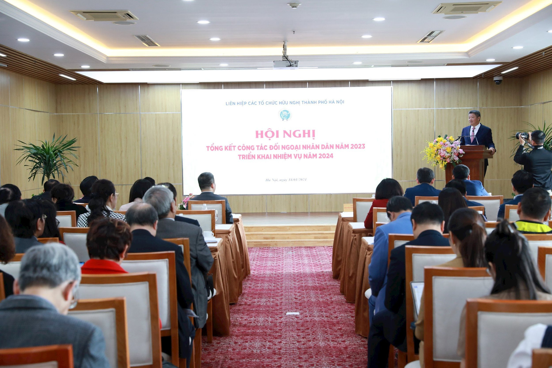 Tại Hội nghị tổng kết công tác đối ngoại nhân dân năm 2023 và triển khai nhiệm vụ năm 2024 tổ chức ngày hôm nay (18/1), Chủ tịch Liên hiệp các tổ chức Hữu nghị thành phố Hà Nội Nguyễn Ngọc Kỳ cho biết năm 2024, Liên hiệp tiếp tục đổi mới tư duy, xây dựng tầm nhìn chiến lược, có phương pháp, cách tiếp cận mới trong việc xây dựng, triển khai các chương trình, kế hoạch của công tác đối ngoại nhân dân; nghiên cứu xây dựng các hoạt động đối ngoại nhân dân có quy mô xứng tầm Thủ đô.