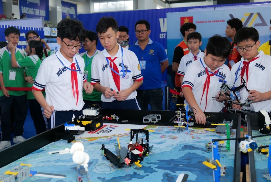 Các đội thi trình bày ý tưởng và biểu diễn robot đầy ấn tượng.Ảnh: Đại sứ quán Đan Mạch tại Việt Nam |