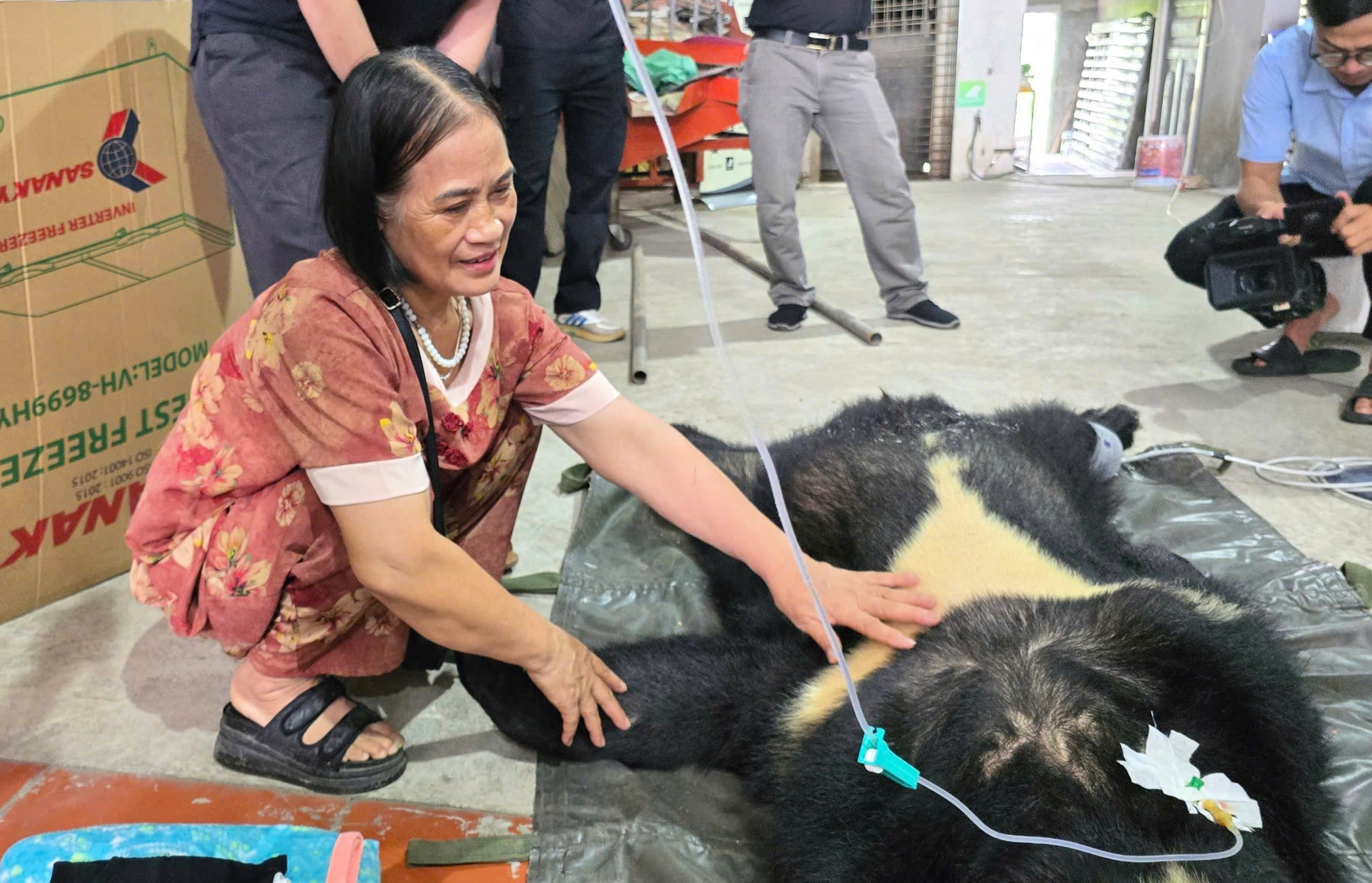 Cá thể gấu đực này được gia đình bà Phạm Thị Hơn nuôi nhốt suốt gần 20 năm trong kho tại tư gia, gần quốc lộ. Nhờ công tác tuyên truyền hiệu quả, bà Hơn đã tự nguyện chuyển giao mà không yêu cầu bồi thường. Trước lúc chia tay, bà còn gửi theo cho gấu buồng chuối và dưa hấu – món ăn gấu yêu thích.