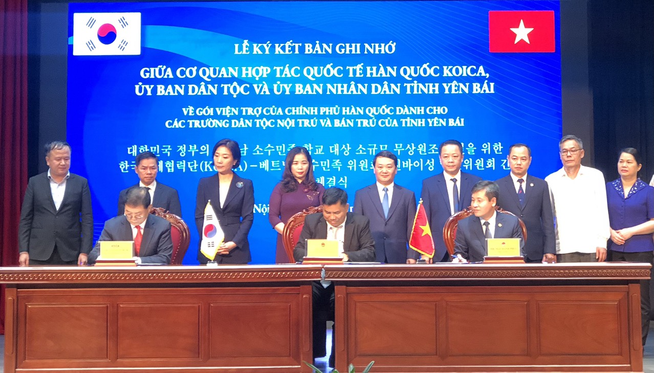 Chiều qua (13/04), Lễ ký kết Biên bản ghi nhớ giữa Ủy ban Dân tộc và UBND tỉnh Yên Bái với Cơ quan Hợp tác quốc tế Hàn Quốc tại Việt Nam (KOICA) về gói viện trợ của Chính phủ Hàn Quốc cho các trường dân tộc nội trú, bán trú tỉnh Yên Bái, diễn ra tại Hà Nội.