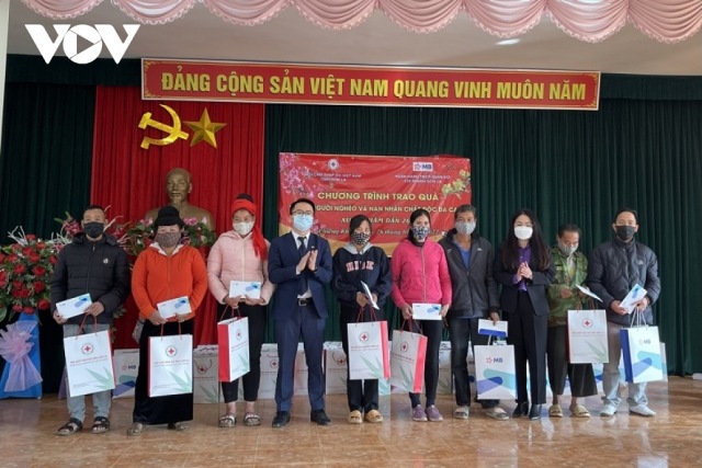 Gần 1.000 suất quà đã được trao tặng tới các hộ nghèo, nạn nhân chất độc da cam và hộ bị ảnh hưởng dịch COVID-19 ở Sơn La trong dịp xuân Nhâm Dần 2022. Ảnh: VOV |