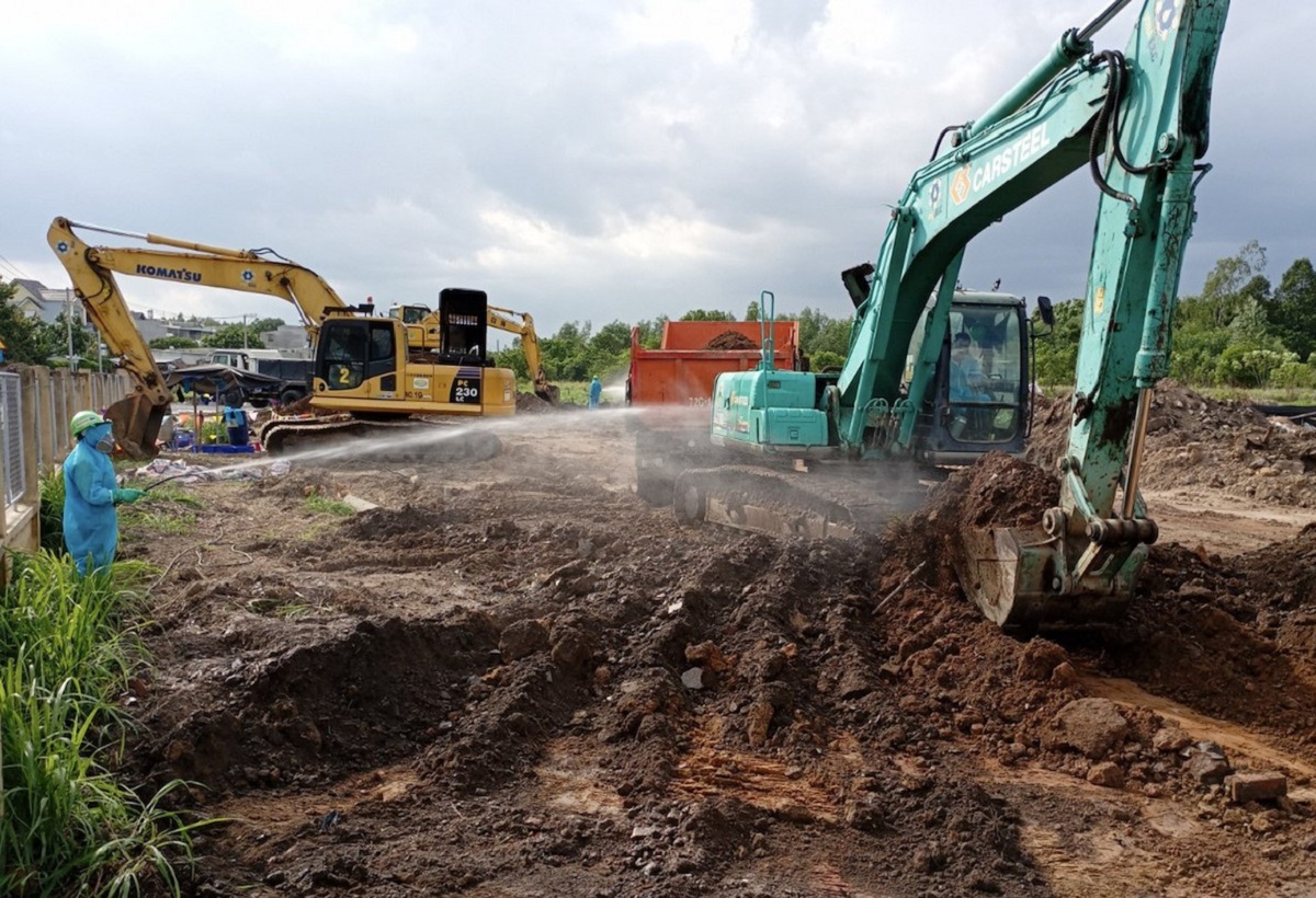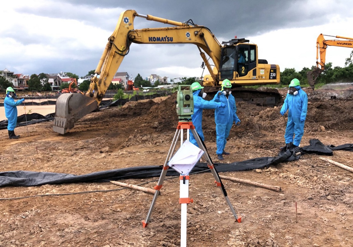 Công tác xử lý làm sạch đất nhiễm dioxin tại sân bay Biên Hòa, tỉnh Đồng Nai. Ảnh: USAID |