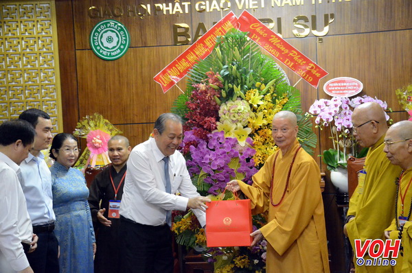 Cũng trong sáng 19/5, Phó Thủ tướng Thường trực Chính phủ Trương Hoà Bình đến chúc mừng Giáo hội Phật giáo TPHCM; chúc mừng Hoà thượng Thích Trí Quảng, Phó Pháp chủ Hội đồng Chứng minh Giáo hội Phật giáo Việt Nam, Trưởng Ban trị sự Giáo hội Việt Nam TPHCM tại Việt Nam Quốc tự; chúc mừng Hoà thượng Thích Thiện Nhơn, Chủ tịch Hội đồng Trị sự Giáo hội Phật giáo Việt Nam tại chùa Minh Đạo-TPHCM. Phó Thủ tướng nhấn mạnh: Cùng với sự phát triển của đạo Phật trên thế giới, đạo Phật vào Việt Nam và gắn bó với dân tộc trong các giai đoạn lịch sử với tinh thần nhập thế, đồng hành, nêu cao tinh thần cứu độ cứu nạn chúng sinh, từ bi, hỉ xả, nhân ái. Phó Thủ tướng chúc mừng thành công của Vesak Liên hiệp quốc 16 và cho rằng, sự thành công này cho thấy sự quan tâm, hỗ trợ, phối hợp của Đảng, Chính phủ, các địa phương trong tổ chức các hoạt động của Phật giáo: "Tôi vui mừng được thấy sự nghiệp Phật giáo ngày càng phát triển, phật pháp tốt, tín đồ ngày càng đông, thực hiện đường lối đạo pháp dân tộc- chủ nghĩa xã hội tốt đẹp. Tôi xin được chia sẻ cùng niềm vui của Giáo hội, chư vị giáo phẩm, tăng ni phật tử".