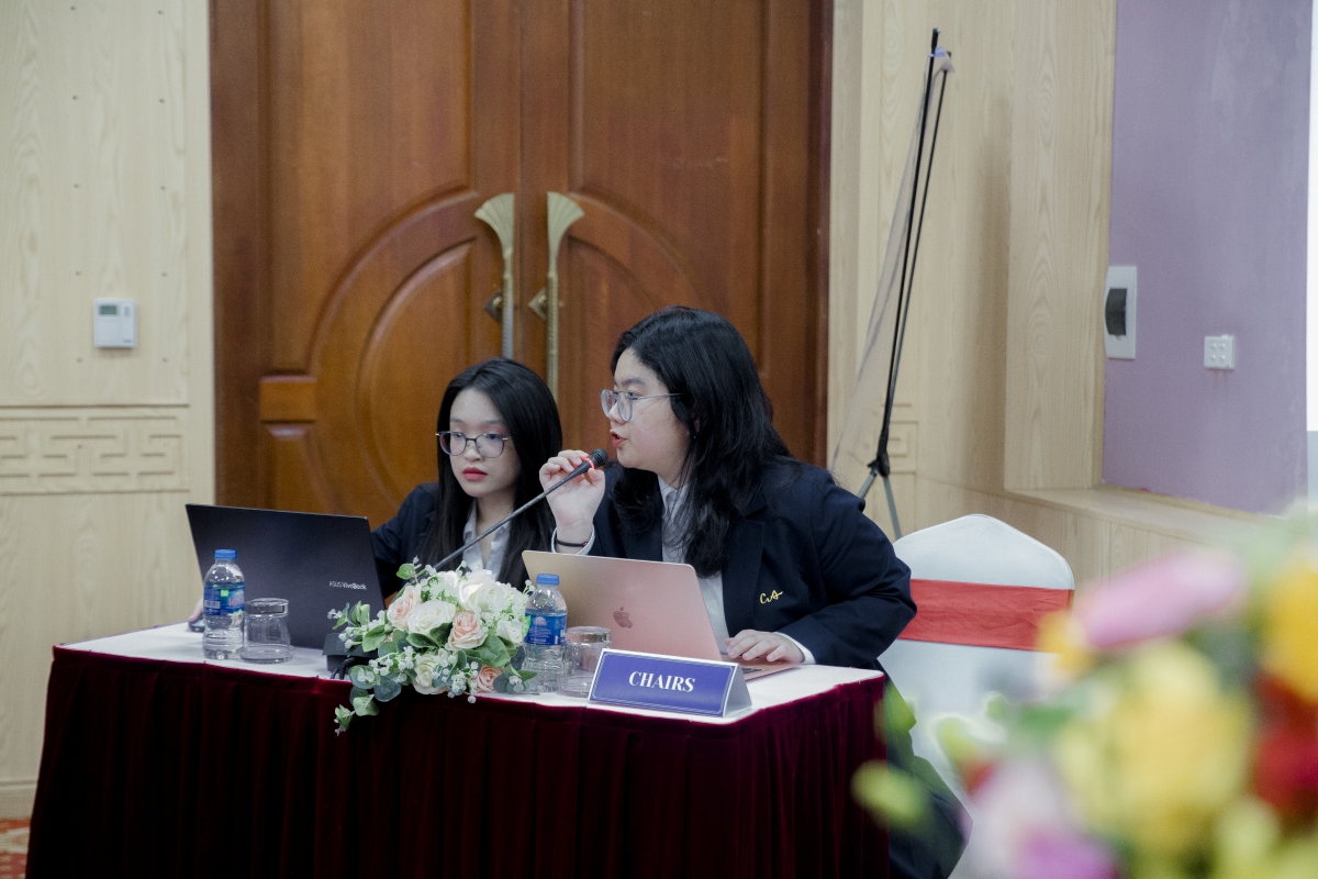 Hội nghị mô phỏng cũng có đầy đủ các vị trí như Chủ toạ, Ban Thư ký và Đại biểu từ các quốc gia khác nhau... |