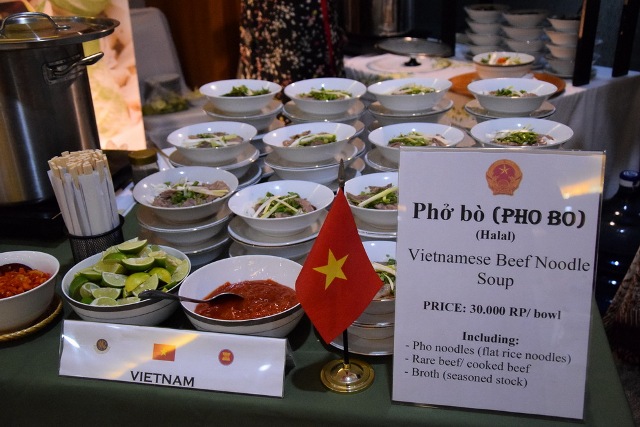 Gian hàng của Việt Nam thu hút nhiều thực khách đến thưởng thức món phở bò truyền thống. Bà Dhani Sarwono, Chủ tịch Hội phụ nữ ASEAN cho biết số tiền thu được trong Hội chợ sẽ dùng cho các hoạt động từ thiện của Hội.