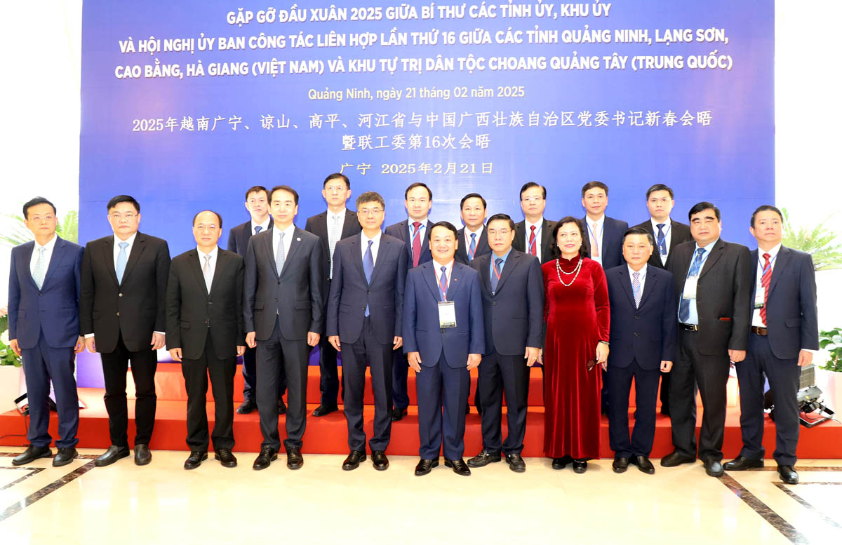 Sáng nay (21/02), tại tỉnh Quảng Ninh, diễn ra Chương trình Gặp gỡ đầu xuân 2025 giữa Bí thư các Tỉnh/Khu và Hội nghị Ủy ban công tác liên hợp lần thứ 16 giữa các tỉnh Quảng Ninh, Lạng Sơn, Cao Bằng, Hà Giang (Việt Nam) và Khu tự trị dân tộc Choang Quảng Tây (Trung Quốc).