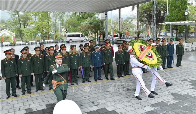 (VOV5) - Chiều qua (11/01), Trung tướng Nguyễn Đức Soát, Chủ tịch Hội Hỗ trợ khắc phục hậu quả bom mìn Việt Nam, đã đến dâng hương, dâng hoa tại Nghĩa trang Liệt sỹ Quốc gia Vị Xuyên, Đền thờ anh hùng liệt sỹ tại Điểm cao 468 (thôn Nặm Ngặt, xã Thanh Thủy, huyện Vị Xuyên).