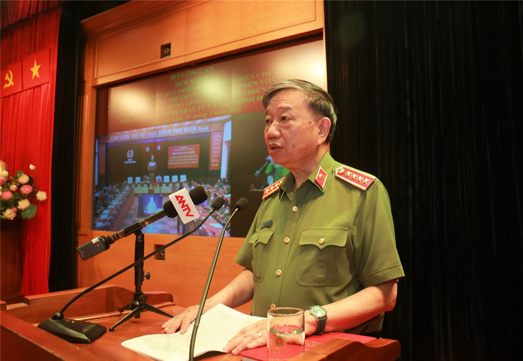 Bộ trưởng Tô Lâm phát biểu tại Hội nghị. Ảnh: bocongan.vn |