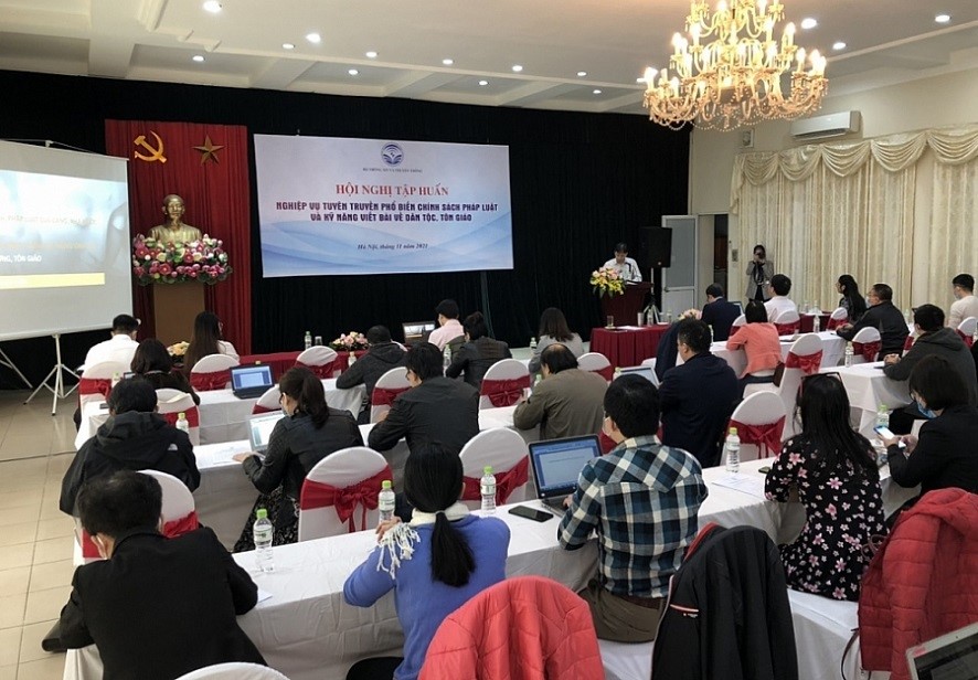 Các học viên được nghe phổ biến về 2 chuyên đề: Chính sách pháp luật của Đảng, Nhà nước về tôn giáo và một số kỹ năng thông tin trong lĩnh vực tín ngưỡng, tôn giáo; Chính sách pháp luật về dân tộc tại Việt Nam và kỹ năng tuyên truyền chính sách, pháp luật về dân.