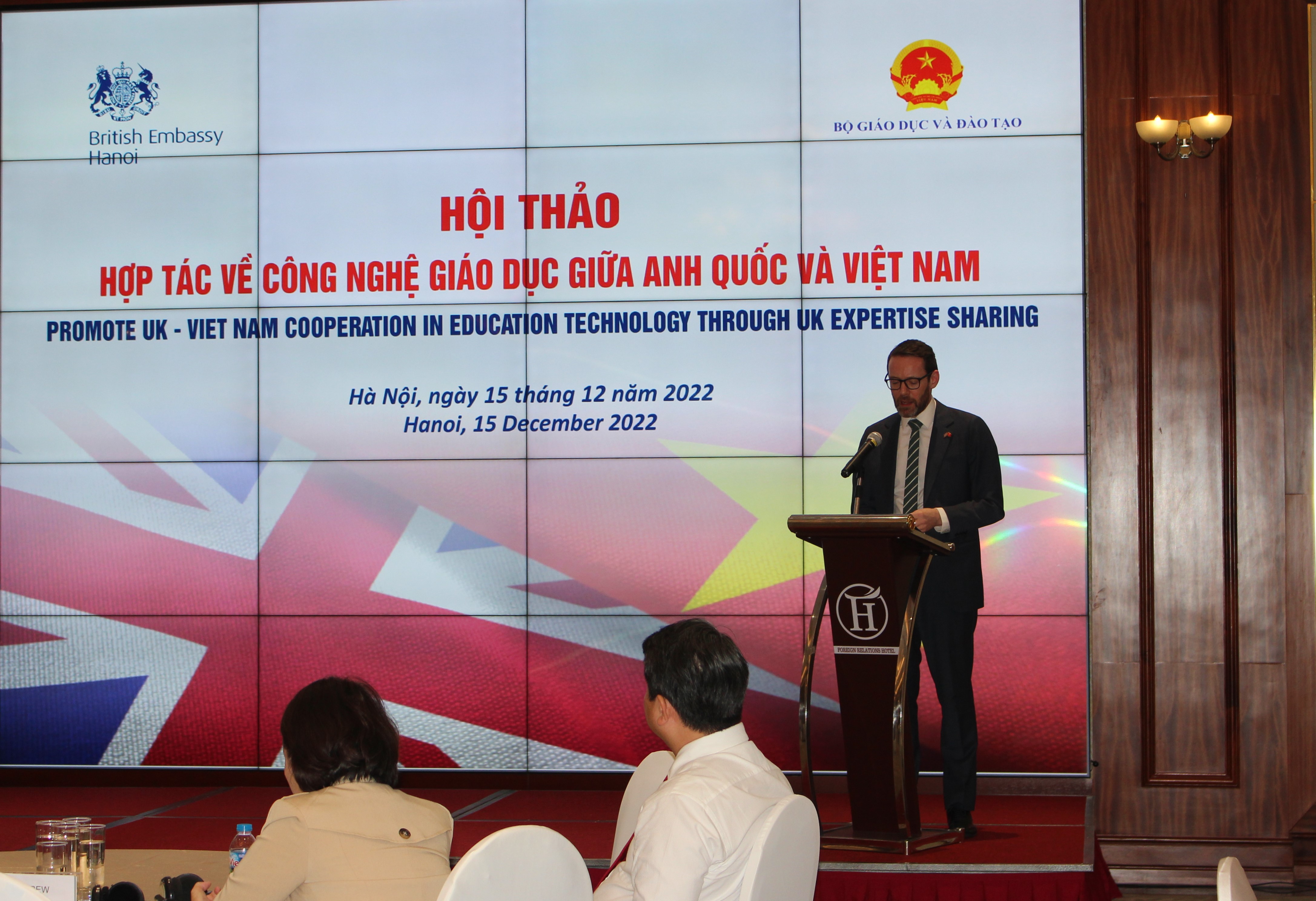 Phát biểu tại Hội thảo, Ông Nguyễn Văn Phúc, Thứ trưởng Bộ Giáo dục và Đào tạo cho rằng: “Để thực hiện mục tiêu tạo bước chuyển biến mạnh mẽ trong phát triển nguồn nhân lực, Việt Nam xác định cần chủ động hội nhập quốc tế về giáo dục, đẩy mạnh thu hút đầu tư nước ngoài trong lĩnh vực giáo dục để nâng cao chất lượng giáo dục của Việt Nam. Vương quốc Anh là quốc gia có nền giáo dục phát triển, có tiềm lực và là đối tác lâu dài với Việt Nam, vì vậy Việt Nam mong muốn kết nối các doanh nghiệp, các cơ sở giáo dục của vương quốc Anh để chia sẻ cơ hội hợp tác trong lĩnh vực phát triển công nghệ giáo dục”.