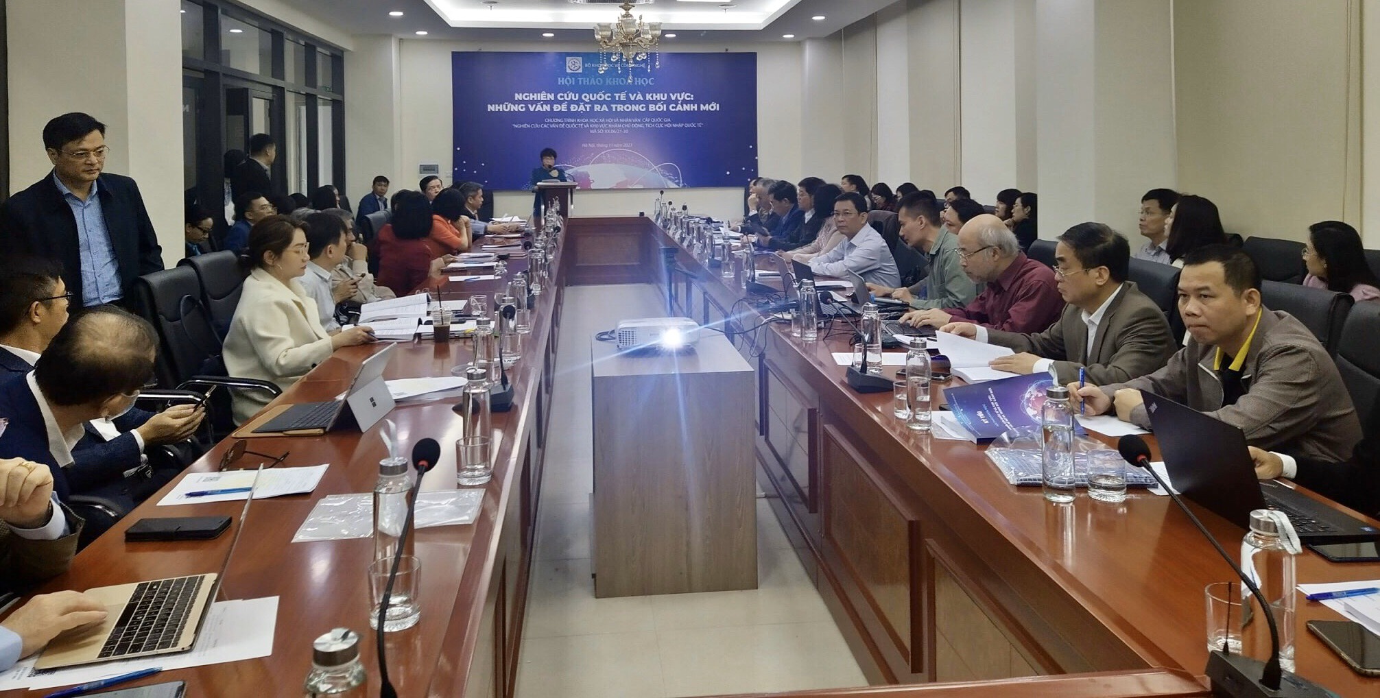 Hội thảo khoa học “Nghiên cứu khu vực và quốc tế: Những vấn đề đặt ra trong bối cảnh mới” được diễn ra trực tiếp tại Tòa nhà khối các Viện nghiên cứu Quốc tế, Hà Nội, đồng thời, trực tuyến tại các điểm cầu: Thành phố Hồ Chí Minh, thành phố Đà Nẵng và thành phố Cần Thơ.