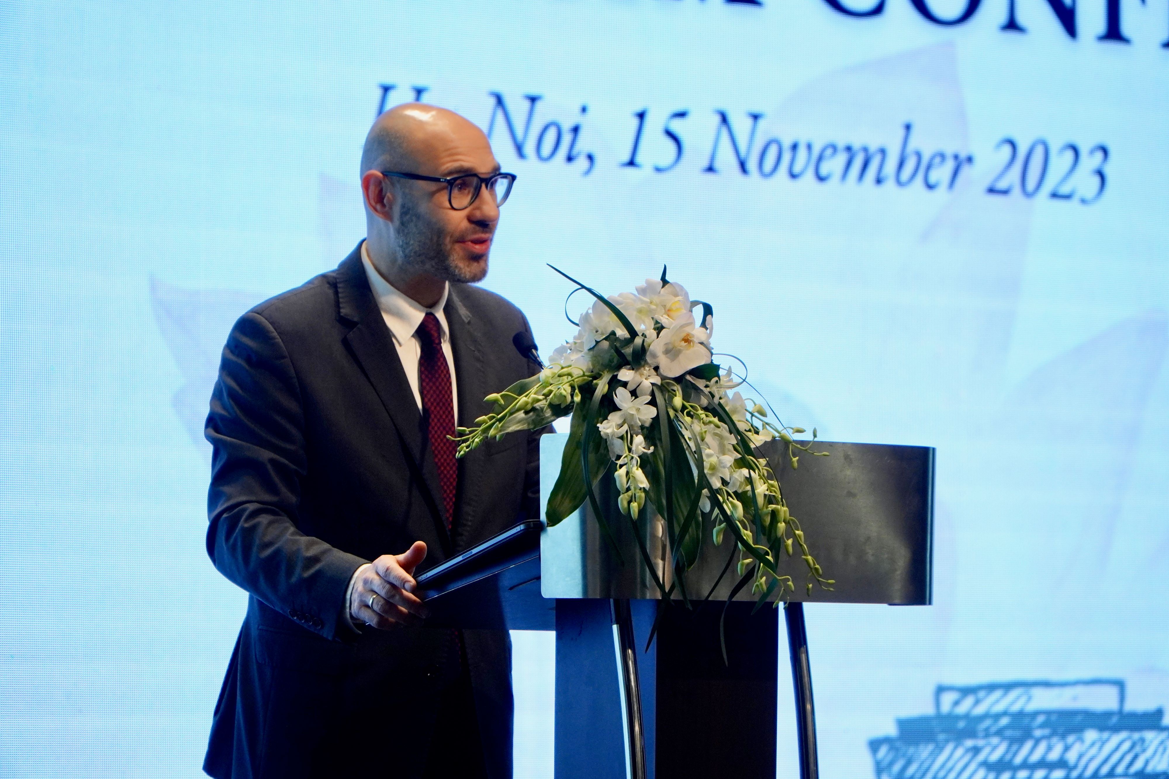 Ông Marcin Czepelak - Tổng Thư ký Tòa Trọng tài Thường trực phát biểu tại hội thảo. Ảnh: Bộ Ngoại giao |