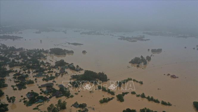 Lũ lớn trên sông Hiếu gây ngập diện rộng tại khu vực xã Thanh An, huyện Cam Lộ và phường Đông Giang, thành phố Đông Hà, tỉnh Quảng Trị. - Ảnh: Hồ Cầu/TTXVN |