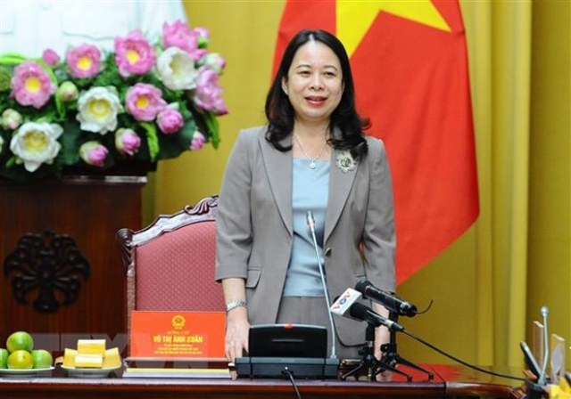 Phó Chủ tịch nước Võ Thị Ánh Xuân phát biểu tại cuộc họp. Ảnh: Minh Đức/TTXVN |