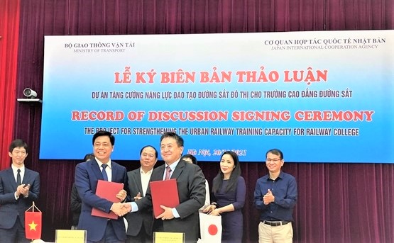 Ngày 20/10, cơ quan này và Bộ Giao thông Vận tải (GTVT) đã ký Biên bản thảo luận dự án hợp tác kỹ thuật "Tăng cường năng lực đào tạo đường sắt đô thị cho Trường Cao đẳng Đường sắt" với Cơ quan Hợp tác Quốc tế Nhật Bản (JICA). Mục tiêu của dự án là nhằm tăng cường năng lực đào tạo nhân lực và vận hành đường sắt đô thị Việt Nam, giúp hệ thống đường sắt đô thị tại các thành phố lớn như Hà Nội, Tp. Hồ Chí Minh được vận hành an toàn, hiệu quả, đem lại sự an tâm cho người sử dụng. Dự án dự kiến được thực hiện trong 4 năm, từ tháng 1/2022 tới tháng 1/2026.